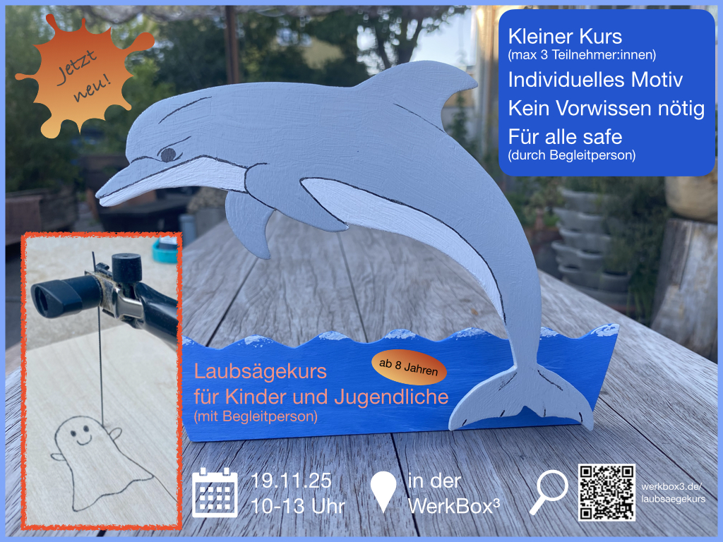Neu – Laubsägekurs für Kinder und Jugendliche1. November 2025/in Über uns/von Martin Friedrich Jetzt gibt es endlich einen Laubsägekurs für Kinder und Jugendliche! Los geht‘s am 19.11. – weitere Termine folgen. Alle weiteren Infos gibt‘s hier. Empfiehl diesen Beitrag weiterteilen teilen merken E-Mail drucken https://www.werkbox3.de/cms/uploads/2015/01/WerkBox-Logo_klein.jpg 0 0 Martin Friedrich https://www.werkbox3.de/cms/uploads/2015/01/WerkBox-Logo_klein.jpg Martin Friedrich2025-11-01 09:28:512025-11-01 10:21:01Neu – Laubsägekurs für Kinder und Jugendliche